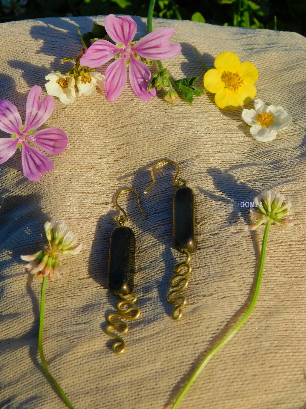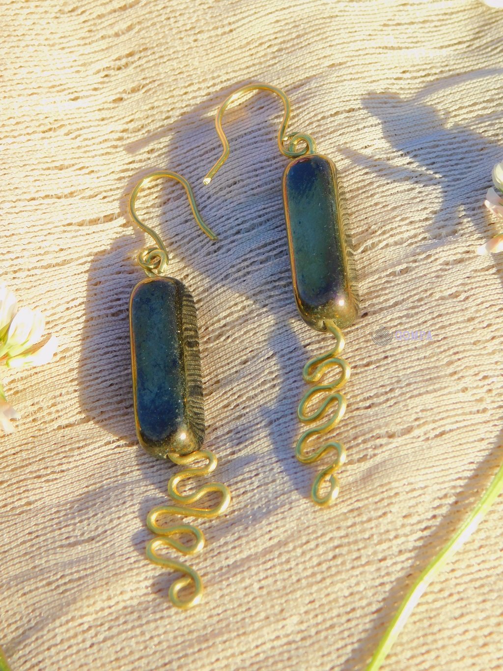 Elegáns fülbevaló, fém akasztóval, nagy, zöldes kővel.