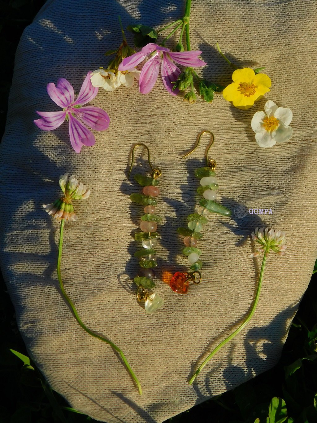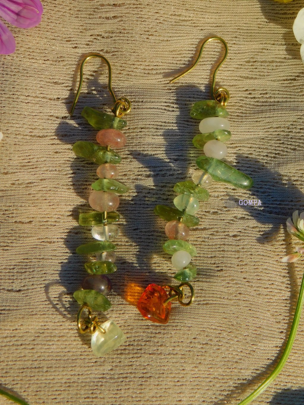 Fülbevaló, "Tavasz", zöld apatittal és hegyikristállyal