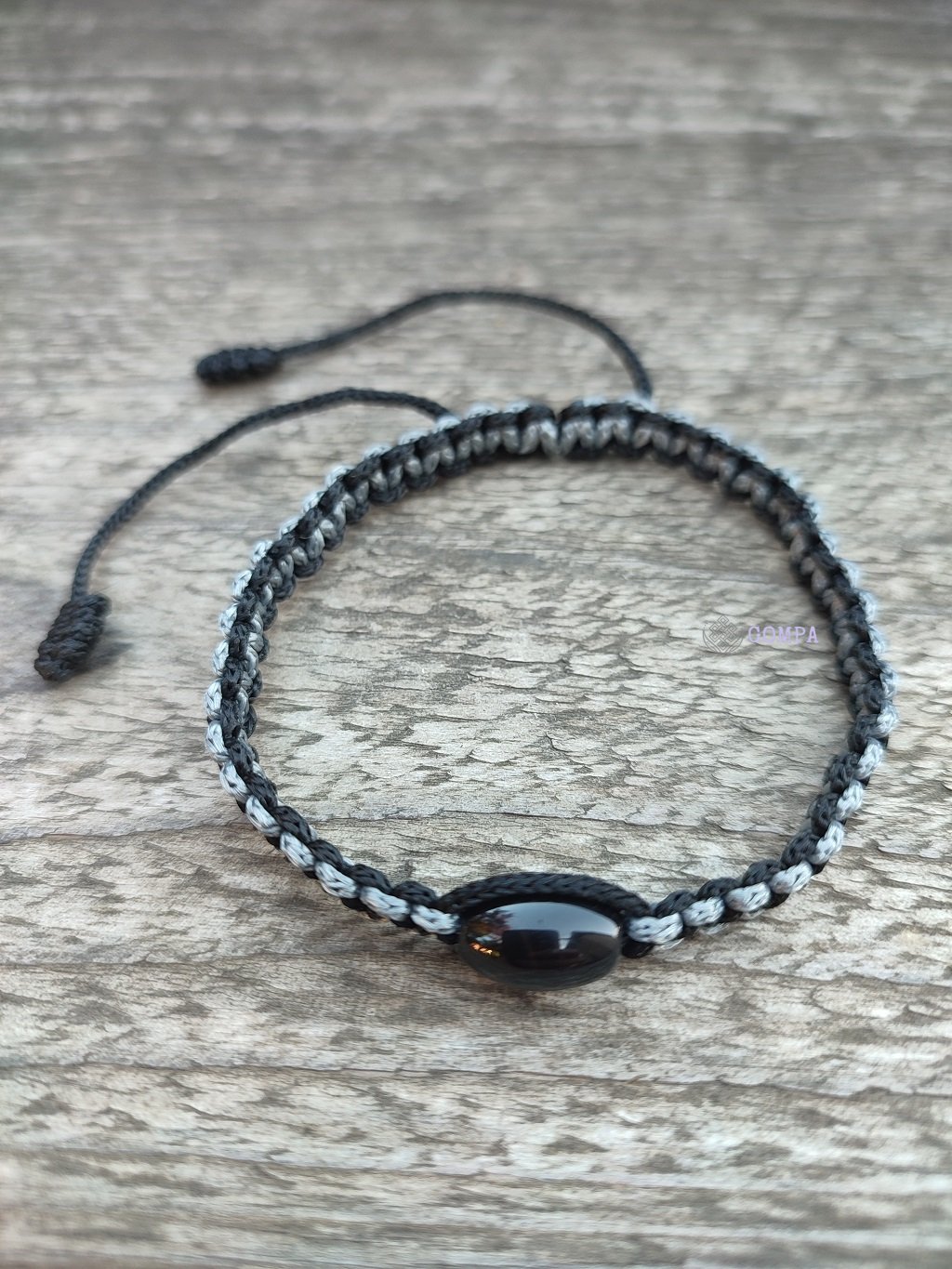 Minimalista stílusú, fonott karkötő, kávé színű achát kővel, bármilyen alkalomra, hétköznapra. Kb. 6 mm széles, 6 cm átmérőjű, mely egyszerűen állítható.