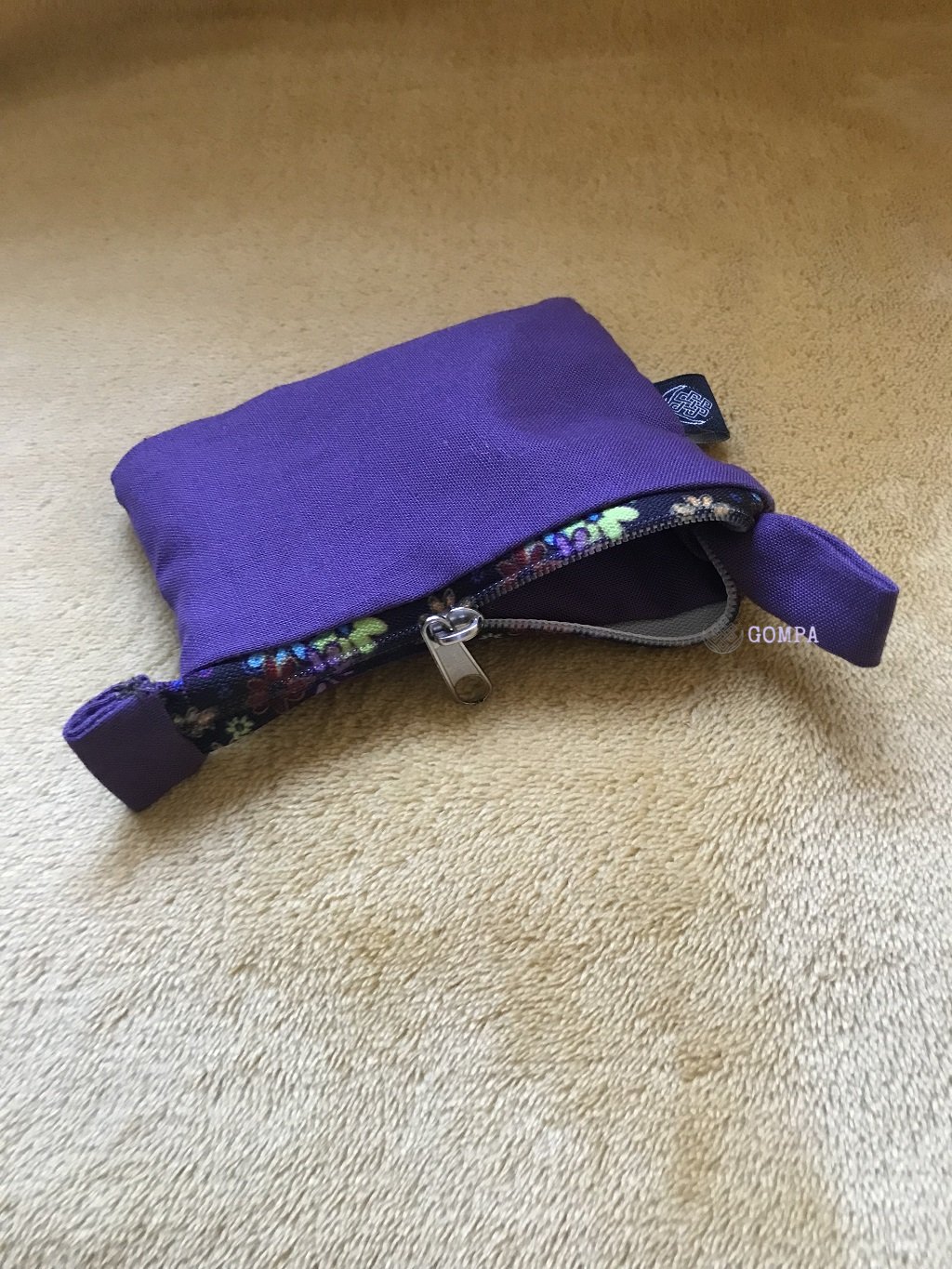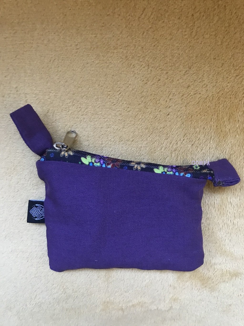 Kulcsok, apró holmik, hitelkártyák és pénz tárolására kiváló, cipzáras, szövetből készült tartó. Kb. 11 cm x 7 cm méretű.