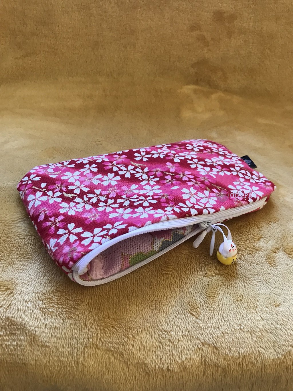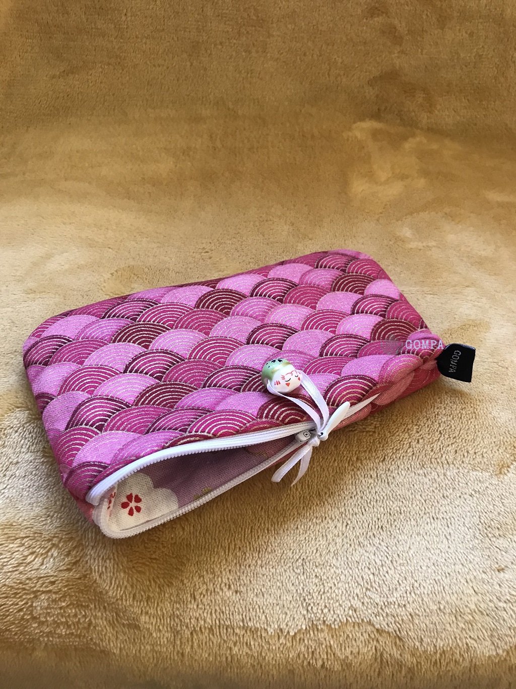Pénztárca, irattárca, neszeszer szerencsehozó cicával, kb. 17 cm hosszú és 9 cm magas. Poliészter szövetből készült praktikus tartó.
