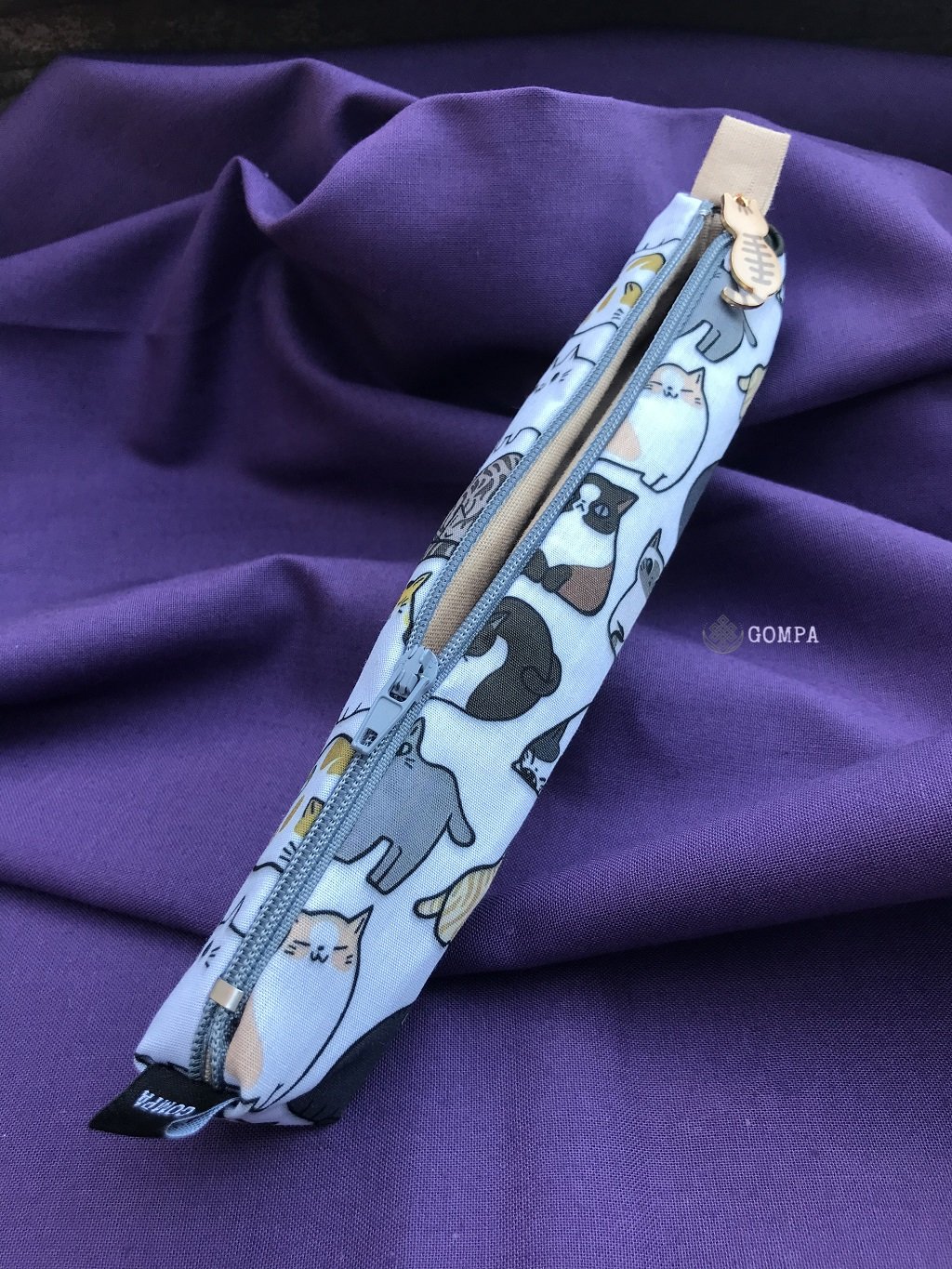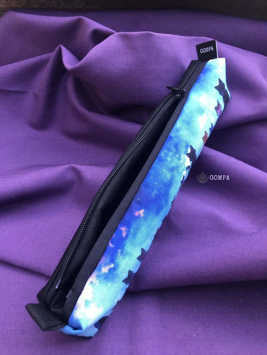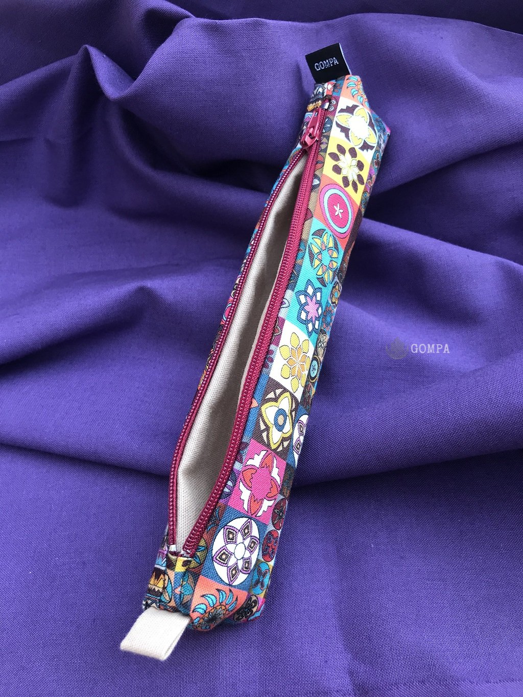 Cipzáras tolltartó, többféle mintával. 21 cm hosszú, kb. 2,5 cm széles és 5 cm magas kényelmes tartó, poliészter anyagból.